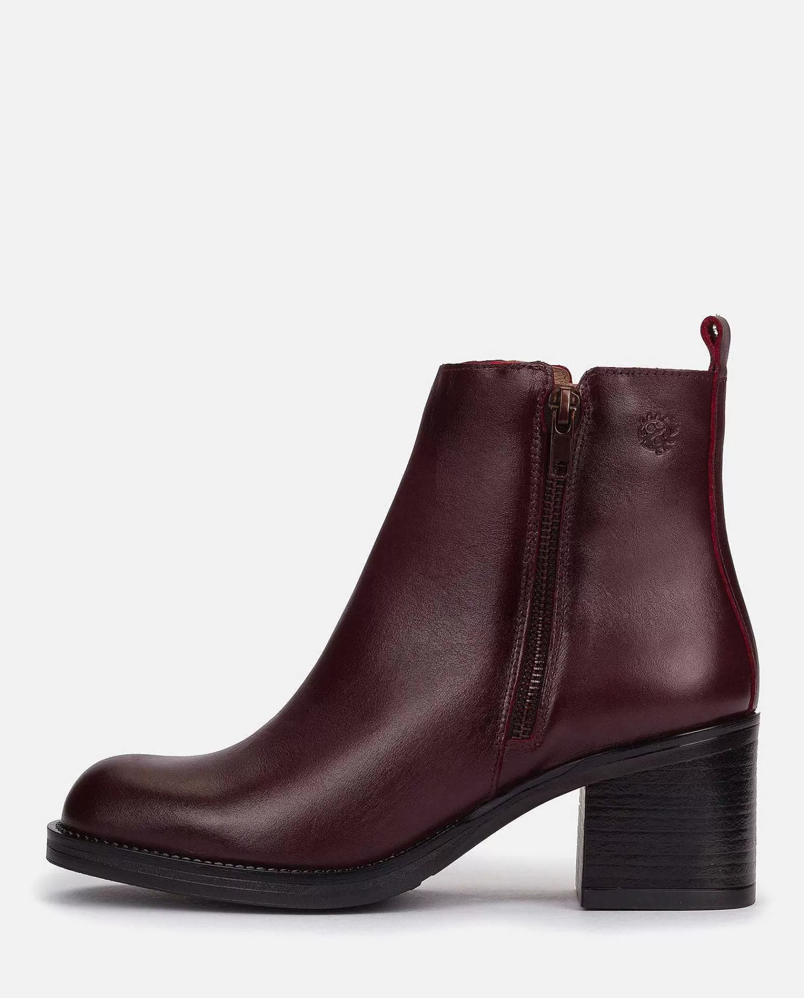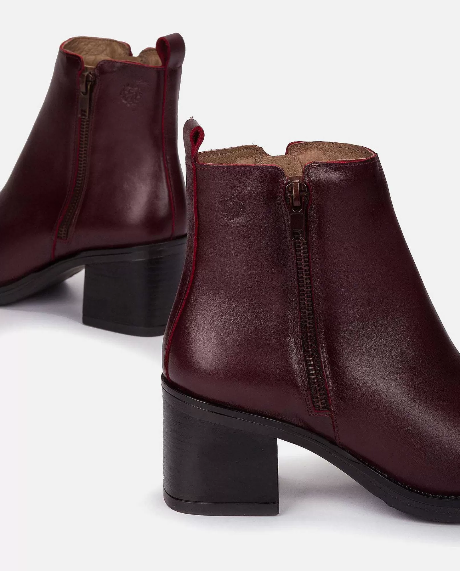Botín Landas 002 De Color Burdeos Con Un Tacón De 6 Cm Con Corte Exterior De Piel Vacuna Lisa, E Interior De Piel Porc…