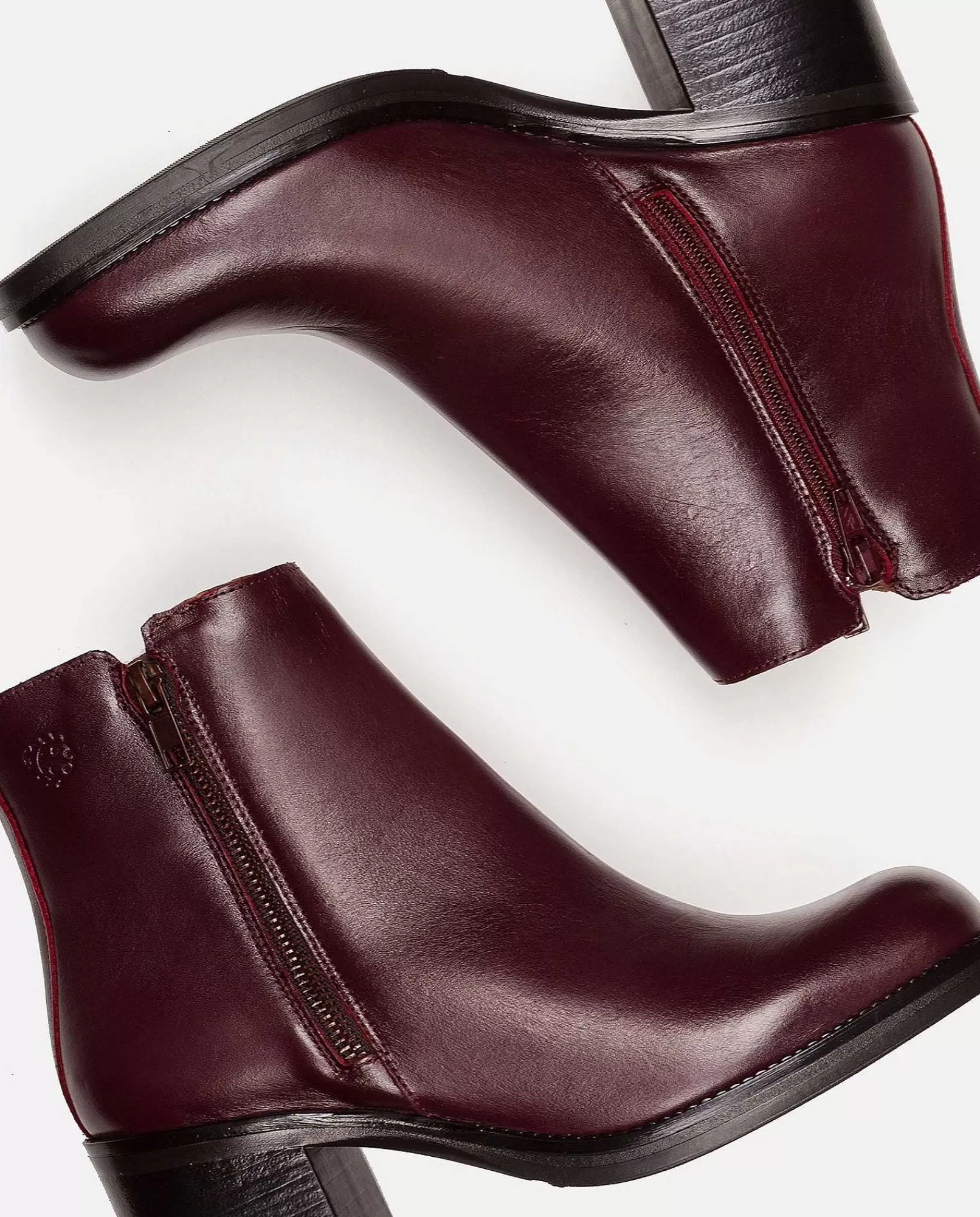 Botín Landas 002 De Color Burdeos Con Un Tacón De 6 Cm Con Corte Exterior De Piel Vacuna Lisa, E Interior De Piel Porcina Y Textil, Para Un Mayor Confort Y Suavidad. Fabricado En España. Diseño Minimalista . Gran Flexibilidad. Plantilla Acolchada Y Antideslizante Que Añade Un Extra De Comodidad. Elaborado Mediante Un Proceso De Fabricación Artesanal Que Usa Tintes Vegetales Y Embalajes Sostenibles Para Respetar El Medio Ambiente.