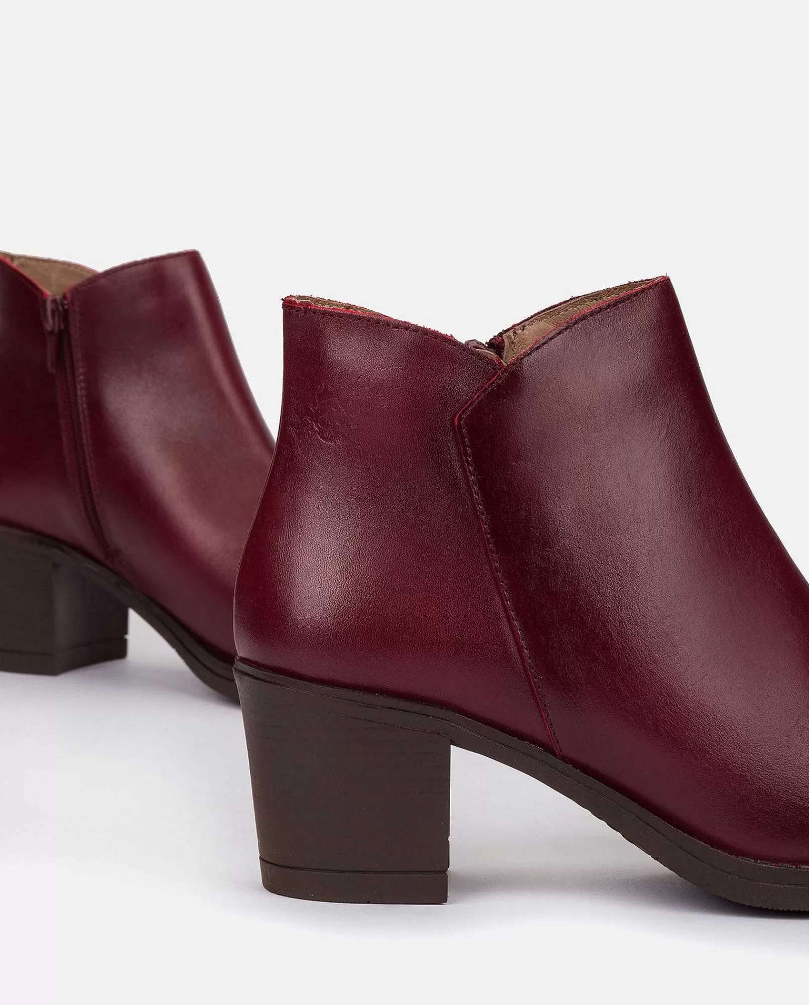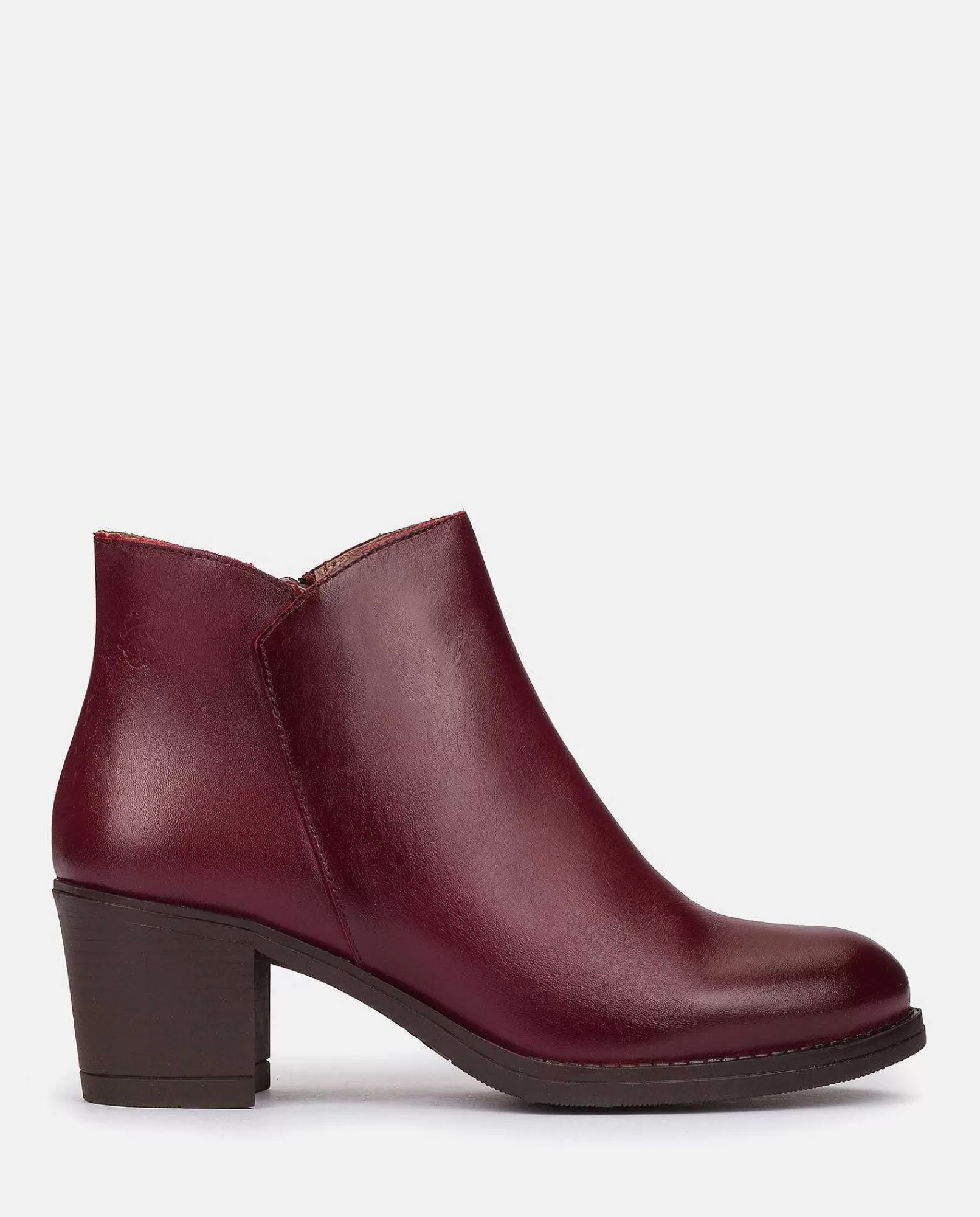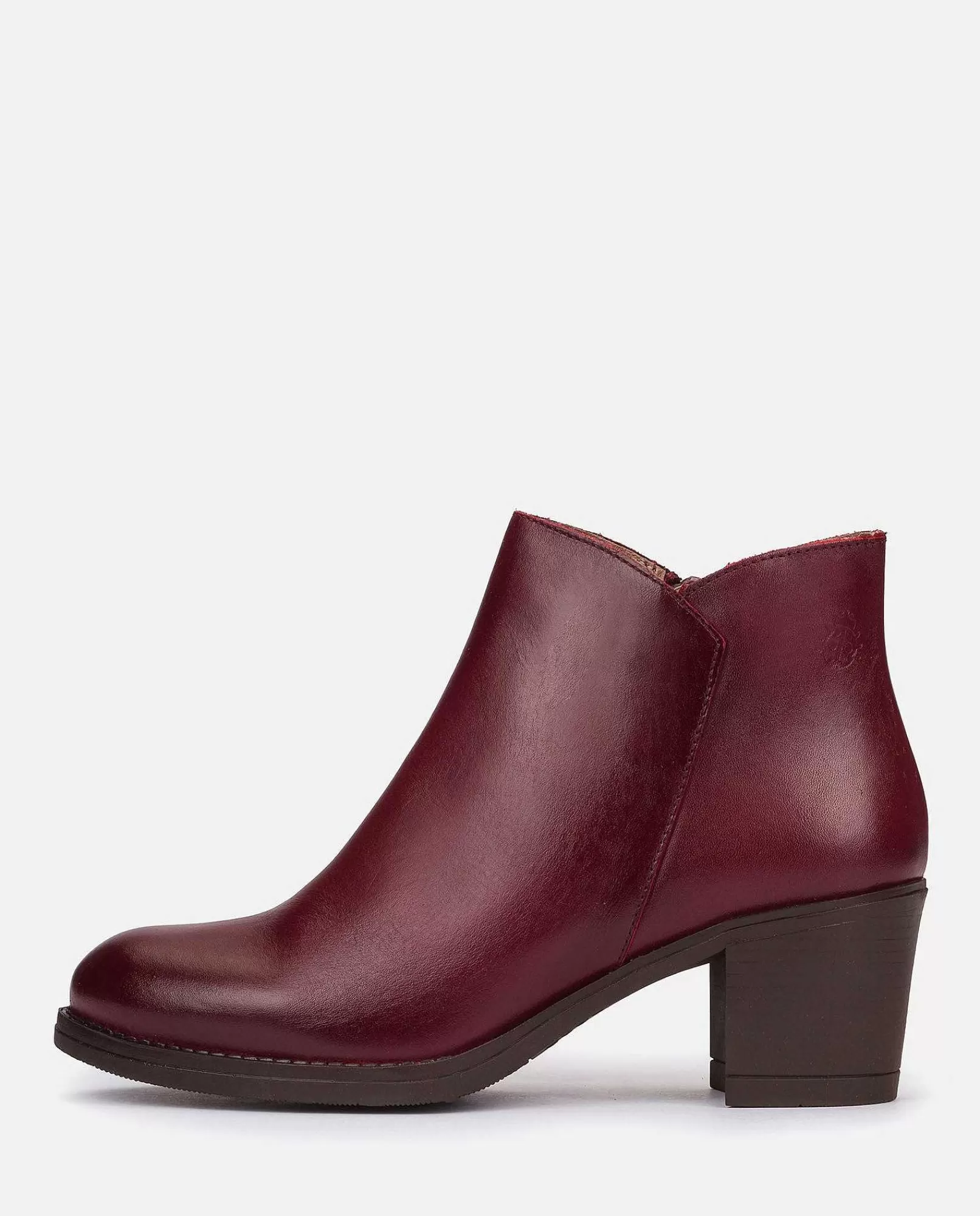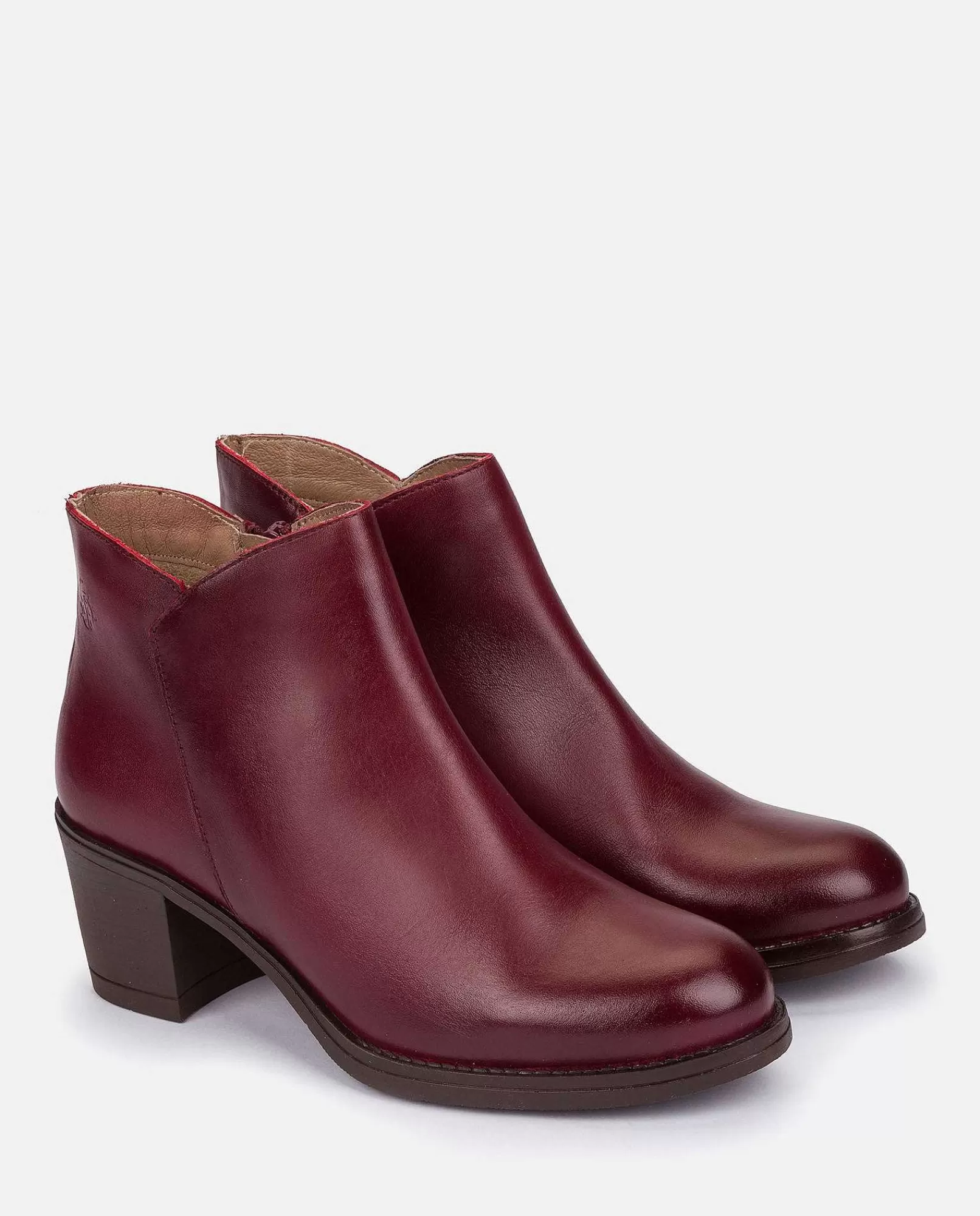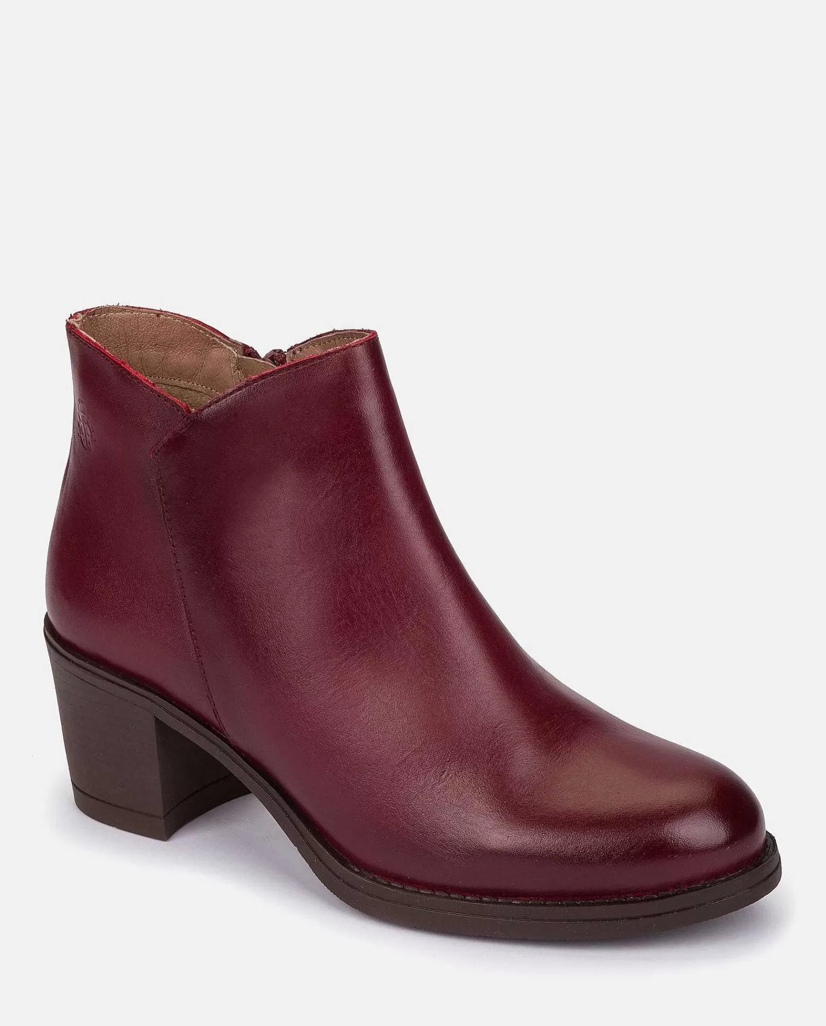 Bota Lille 006 De Color Burdeos Con Un Tacón De 6 Cm Con Corte Exterior De Piel Vacuna Lisa, E Interior De Piel Porcina Y Textil, Diseño Distinto Por Su Corte En Media Cascada, Resaltando El Centro Del Tobillo. Fabricada En España. Diseño Minimalista . Gran Flexibilidad. Plantilla Acolchada Y Antideslizante Que Añade Un Extra De Comodidad. Elaborada Mediante Un Proceso De Fabricación Artesanal Que Usa Tintes Vegetales Y Embalajes Sostenibles Para Respetar El Medio Ambiente.
