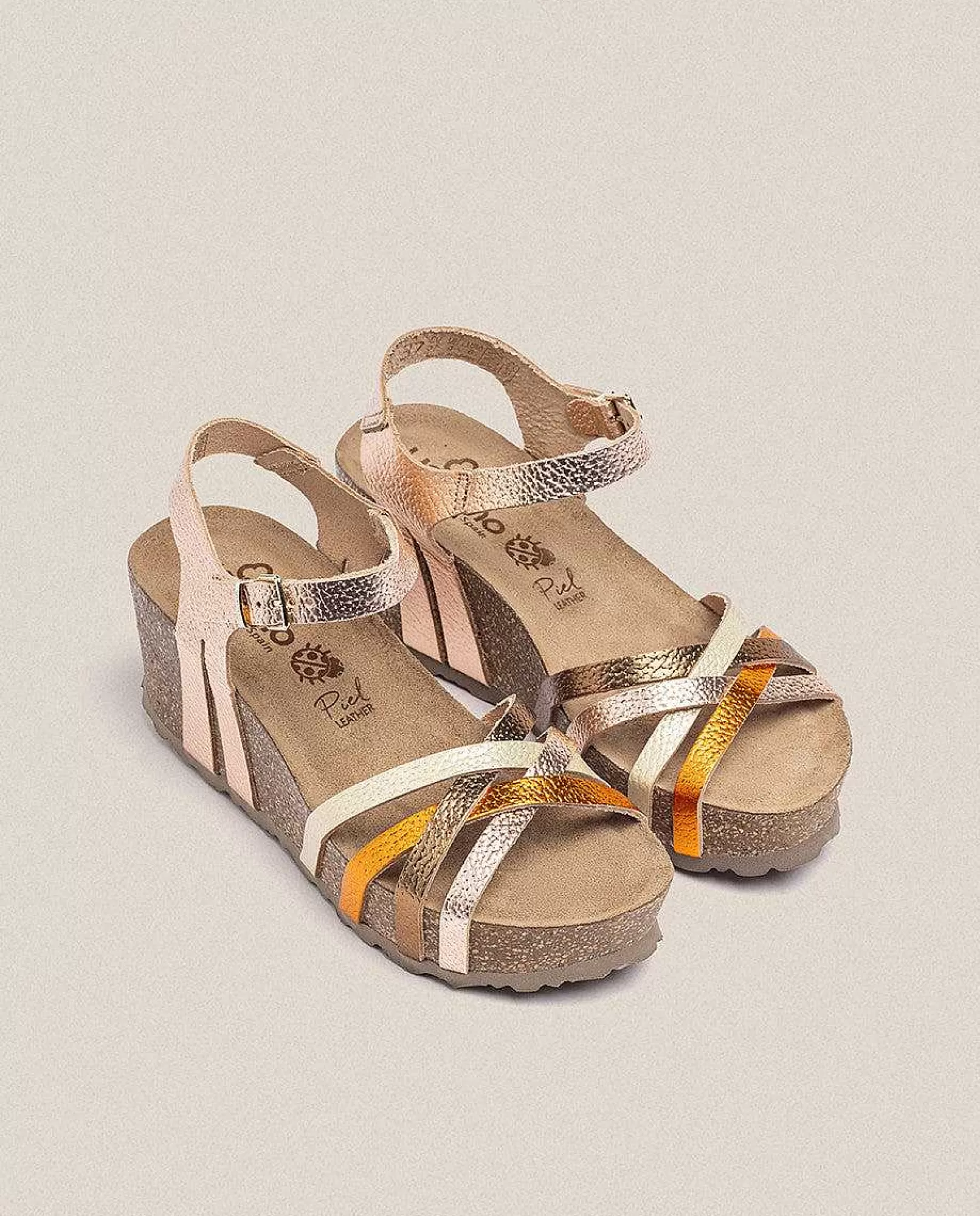 La Sandalia De Cuña Bari 302 En Rosa, Compuesto Por Una Serie De Tiras Multicolor Que Sujetan Los Dedos Y Un Cierre De Hebilla Que Facilita El Calce. Tiene Una Suela De 5,5 Cm Y Una Plantilla Acolchada Y Antideslizante Que Garantiza El Agarre Del Pie. Está Elaborada De Manera Artesanal En España Mediante El Uso De Tintes Vegetales Respetuosos Con El Medio Ambiente.