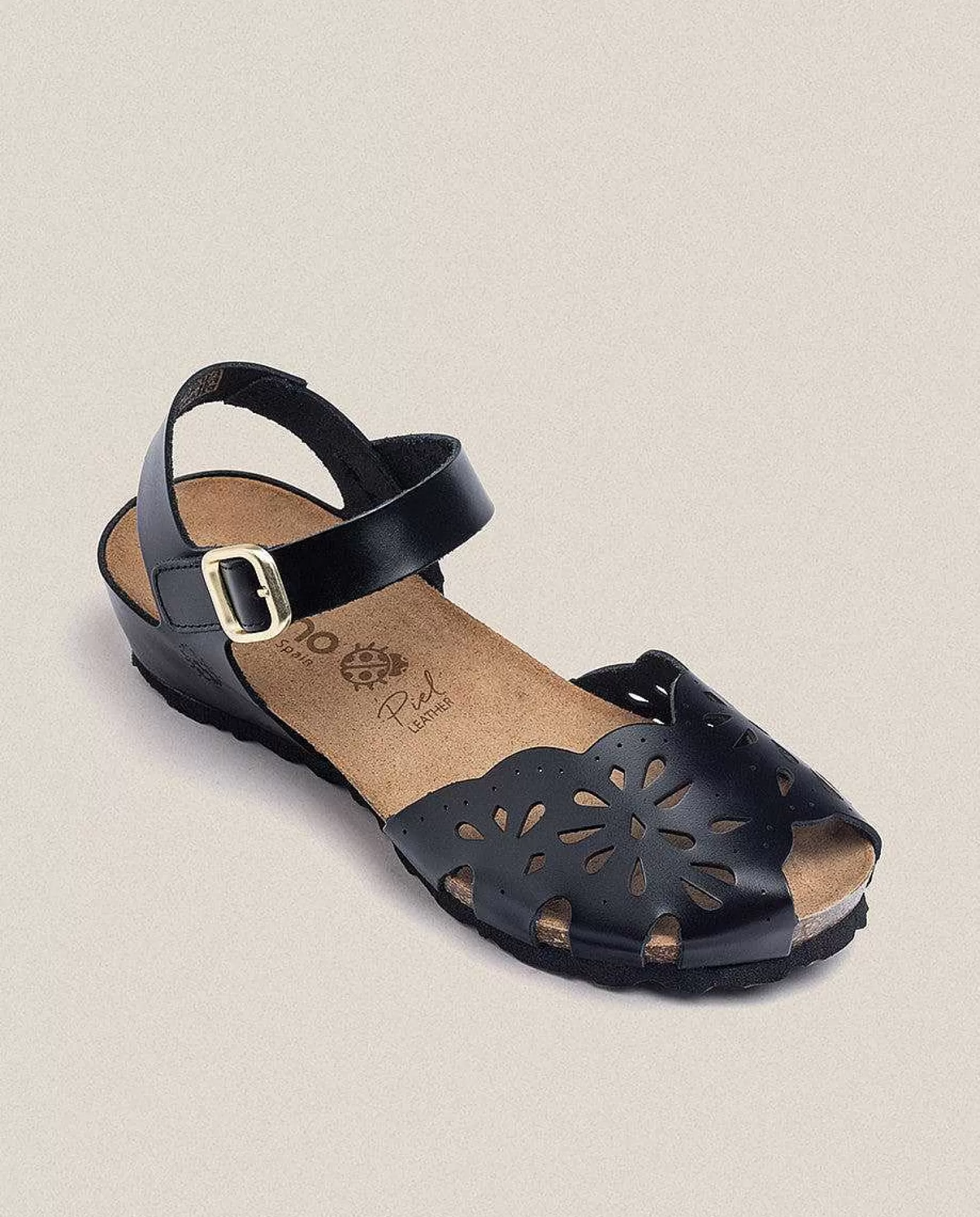 La Sandalia De Cuña Monaco, Un Clásico Renovado. Color Negro, Punta Cerrada Y Más Detalles En Toda La Sandalia, Hebilla Decorativa Y Cierre De Velcro, Para Garantizar La Frescura Y La Comodidad Que Caracteriza A Este Modelo. Cuenta Con Una Suela De 3,5 Cm Y Una Plantilla Antideslizante Que Garantiza El Agarre Del Pie. Está Elaborada De Manera Artesanal En España, Material De Piel Y Uso De Tintes Vegetales Respetuosos Con El Medio Ambiente.