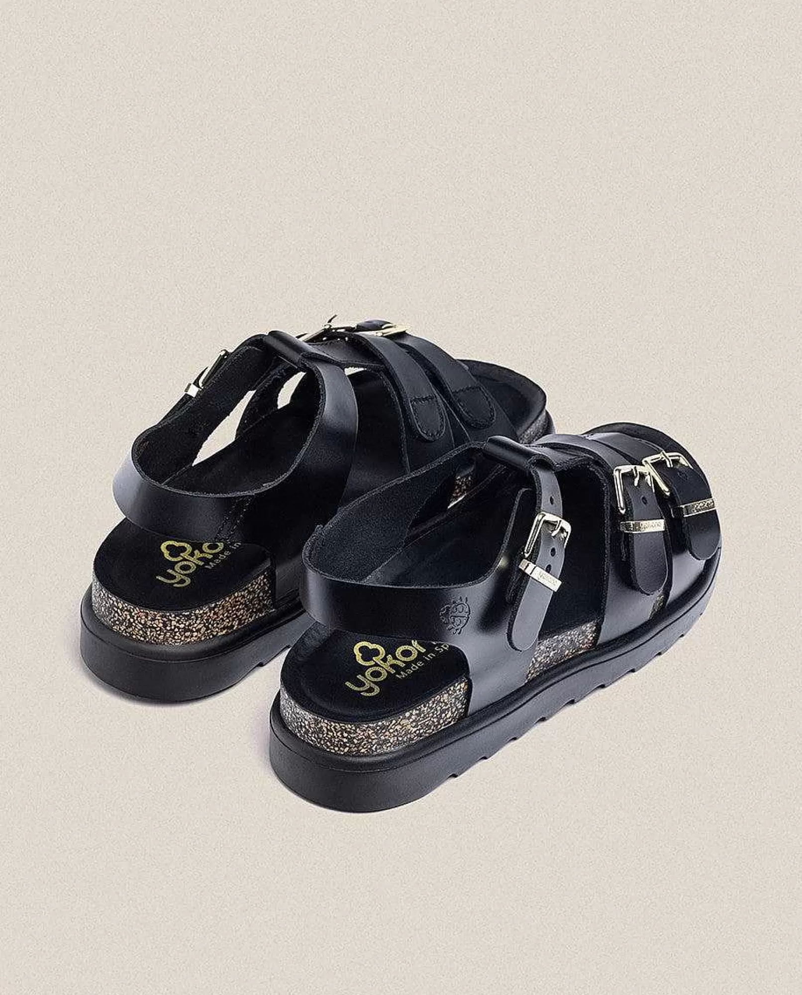 El Modelo Tunez 114 En Negro, Presenta Un Innovador Diseño Pero Sin Perder La Esencia De La Línea Tunez, Tres Correas Con Tres Hebillas Doradas, Piso Estampado Y Calidad Absoluta. Cuenta Con Una Plataforma De 4 Cm Y Una Plantilla Antideslizante Que Garantiza El Agarre Del Pie. Está Elaborado De Manera Artesanal En España, Material De Piel Y Uso De Tintes Vegetales Respetuosos Con El Medio Ambiente.