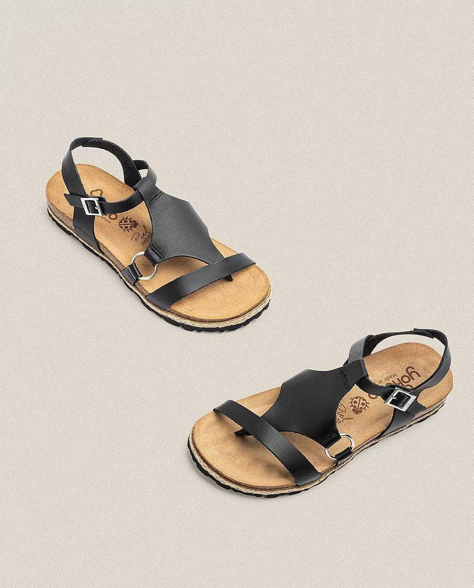 Mujer Yokono Sandalia Plana Chipre 021 Negro