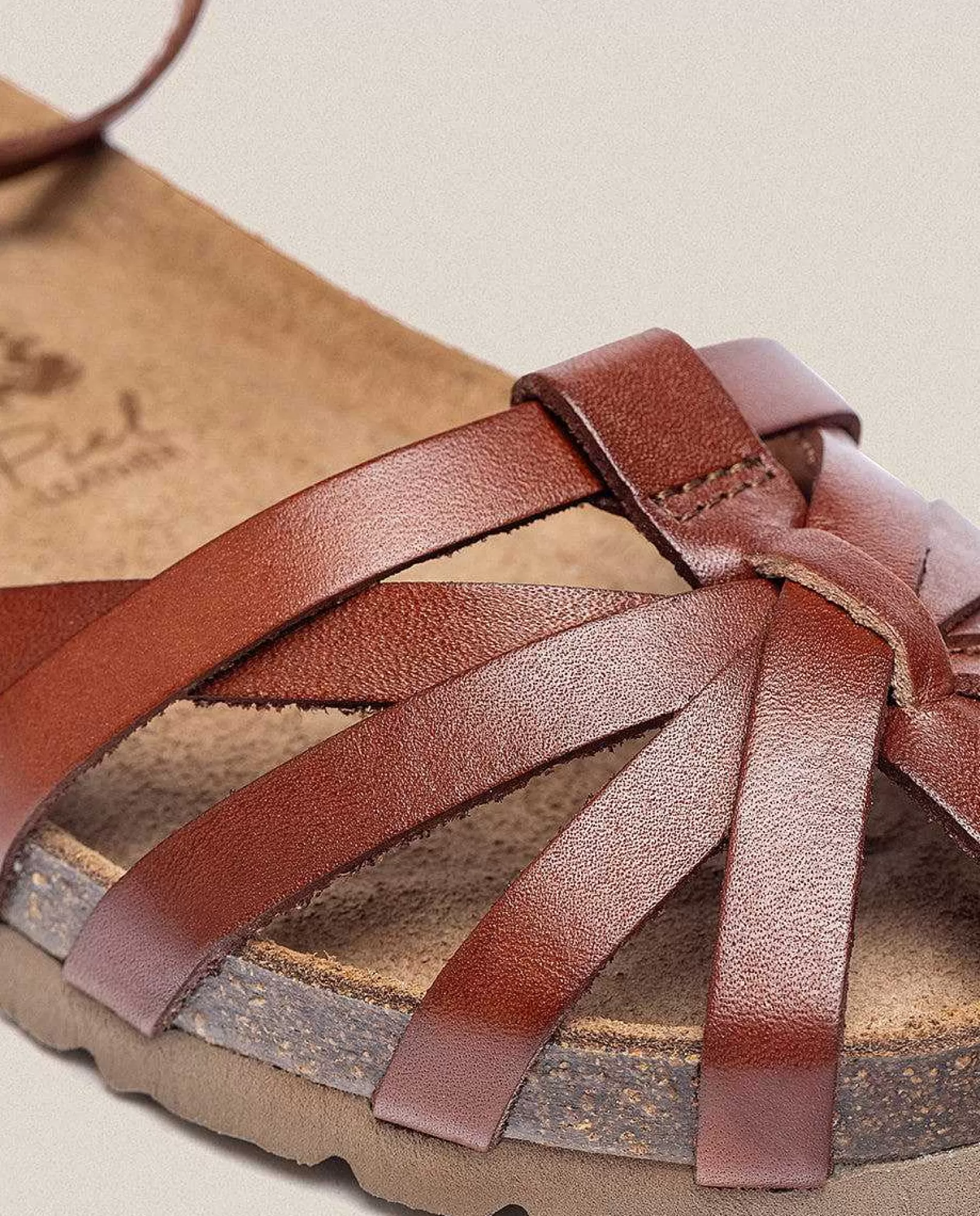 Sandalia Plana De Color Nuez Con Una Altura De 2 Centímetros. Cuenta Con Un Cierre De Hebilla Que Se Ajusta Al Tobillo A La Perfección Y Un Diseño Elaborado Con Finas Tiras De Vaquetilla Que No Dejan Indiferente A Nadie. Por Algo Es Uno De Los Modelos Más Exitosos Cada Verano. Luce Nuestro Modelo Icónico Con Tu Look Más Cómodo Y Fresco. Fabricado En España