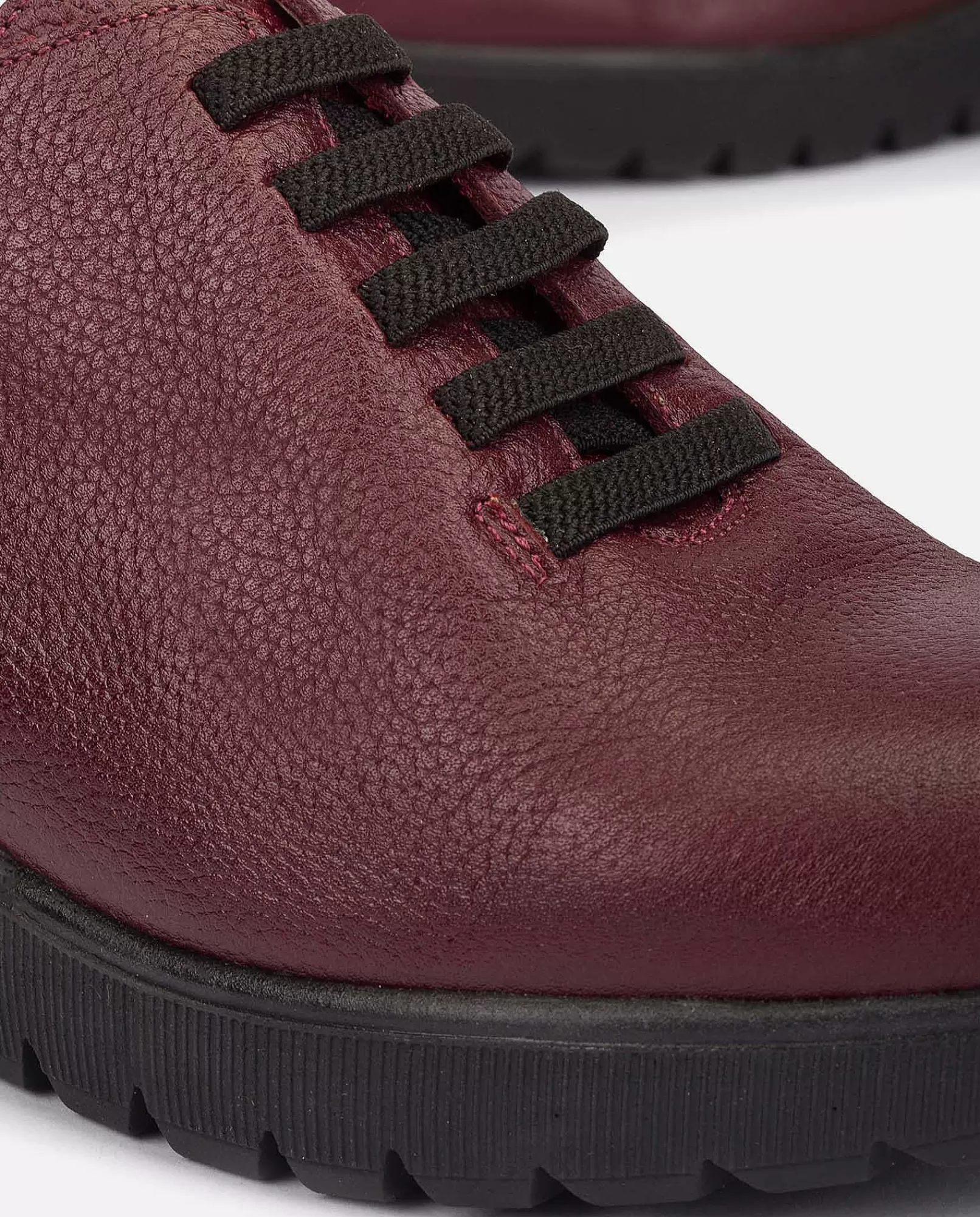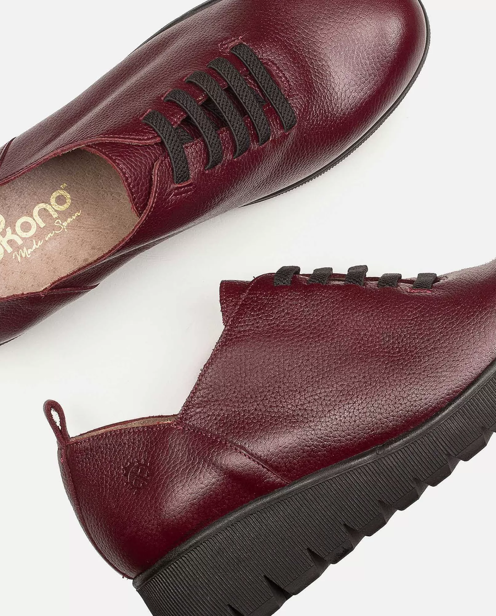 Zapato De Color Burdeos Y Suela Negra Cuya Plataforma Es De 4 Cm Con Corte Exterior De Piel Vacuna, E Interior De Piel Porcina Y Textil, Para Un Mayor Confort Y Suavidad. Fabricada En España. Agarre Mediante Cordones De Color Negro, Junto Al Detalla De La Mariquita De Yokono. Gran Flexibilidad. Plantilla Acolchada Y Antideslizante Que Añade Un Extra De Comodidad. Elaborada Mediante Un Proceso De Fabricación Artesanal Que Usa Tintes Vegetales Y Embalajes Sostenibles Para Respetar El Medio Ambiente.