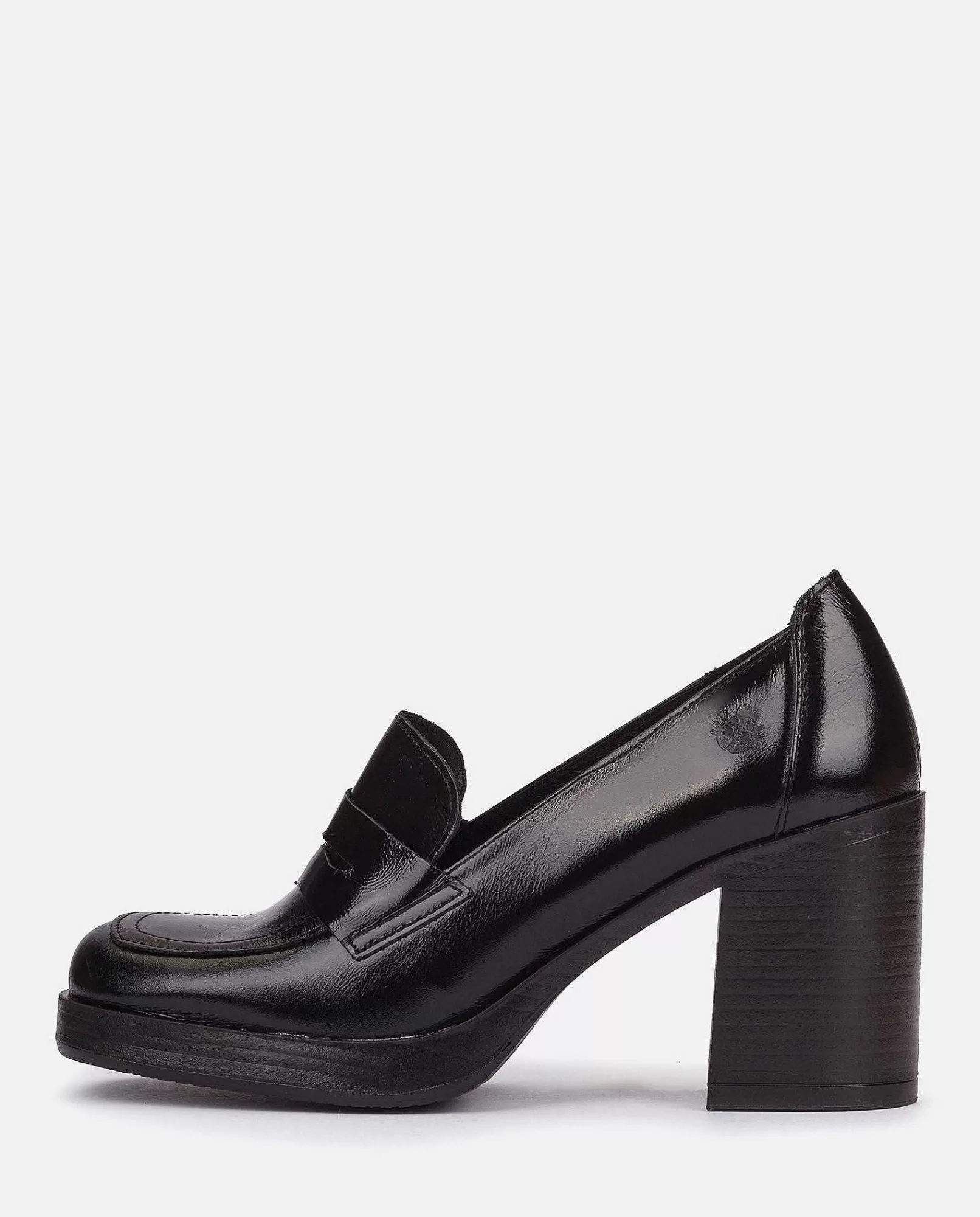 El Modelo Estilo Mocasín Con Punta Cuadrada Kolin 004 En Negro. Ha Sido Diseñado En Piel Vacuna Con Un Tacón De 8 Cm, Estético, Elegante Y Súper Cómodo ¿A Qué Esperas? Fabricado En España. Está Elaborado De Manera Artesanal, Material De Piel Vacuna Y Uso De Tintes Vegetales Respetuosos Con El Medio Ambiente.
