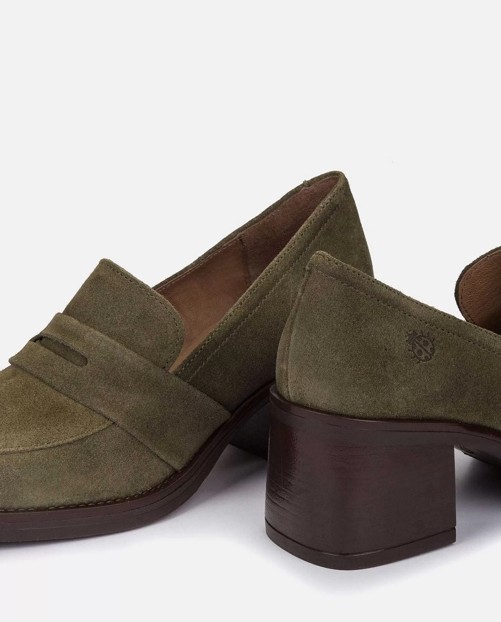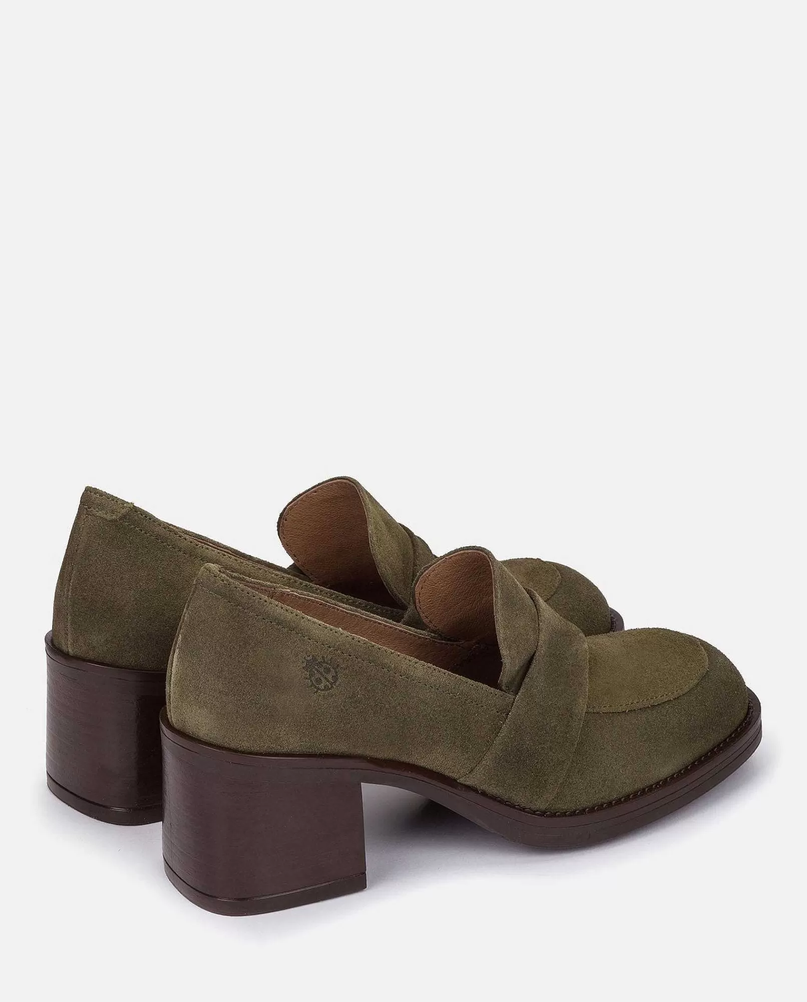 El Zapato De Piel Serraje, Estilo Mocasín, Con Punta Cuadrada Y Tacón De 6 Cm En Color Verde. Ha Sido Diseñado Para Aportar Un Toque Clásico Y Cómodo. Fabricado En España. Está Elaborado De Manera Artesanal, Material De Piel Vacuna Y Uso De Tintes Vegetales Respetuosos Con El Medio Ambiente.