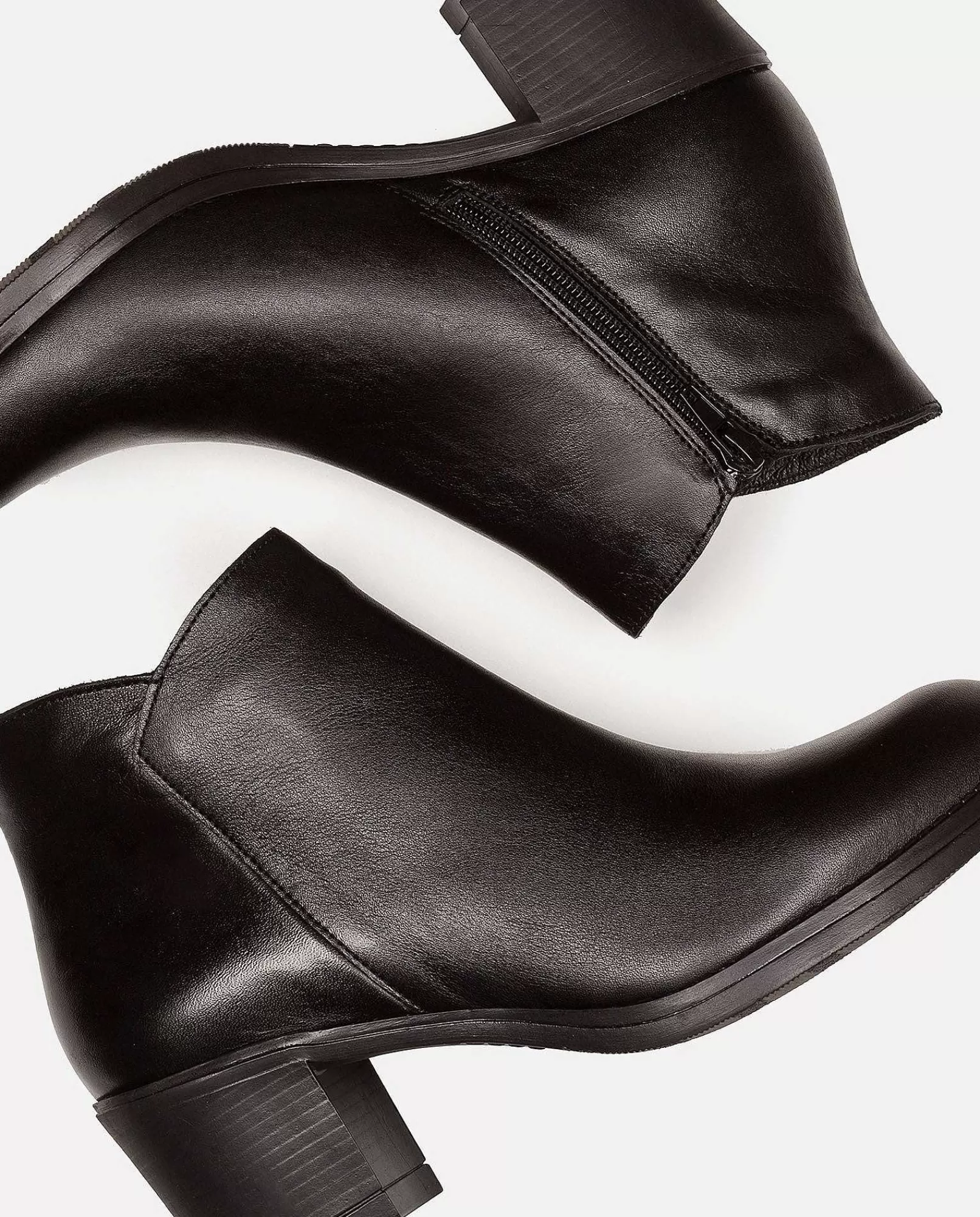 Bota Lille 006 De Color Negro Con Un Tacón De 6 Cm Con Corte Exterior De Piel Vacuna Lisa, E Interior De Piel Porcina Y Textil, Diseño Distinto Por Su Corte En Media Cascada, Resaltando El Centro Del Tobillo. Fabricada En España. Diseño Minimalista . Gran Flexibilidad. Plantilla Acolchada Y Antideslizante Que Añade Un Extra De Comodidad. Elaborada Mediante Un Proceso De Fabricación Artesanal Que Usa Tintes Vegetales Y Embalajes Sostenibles Para Respetar El Medio Ambiente.