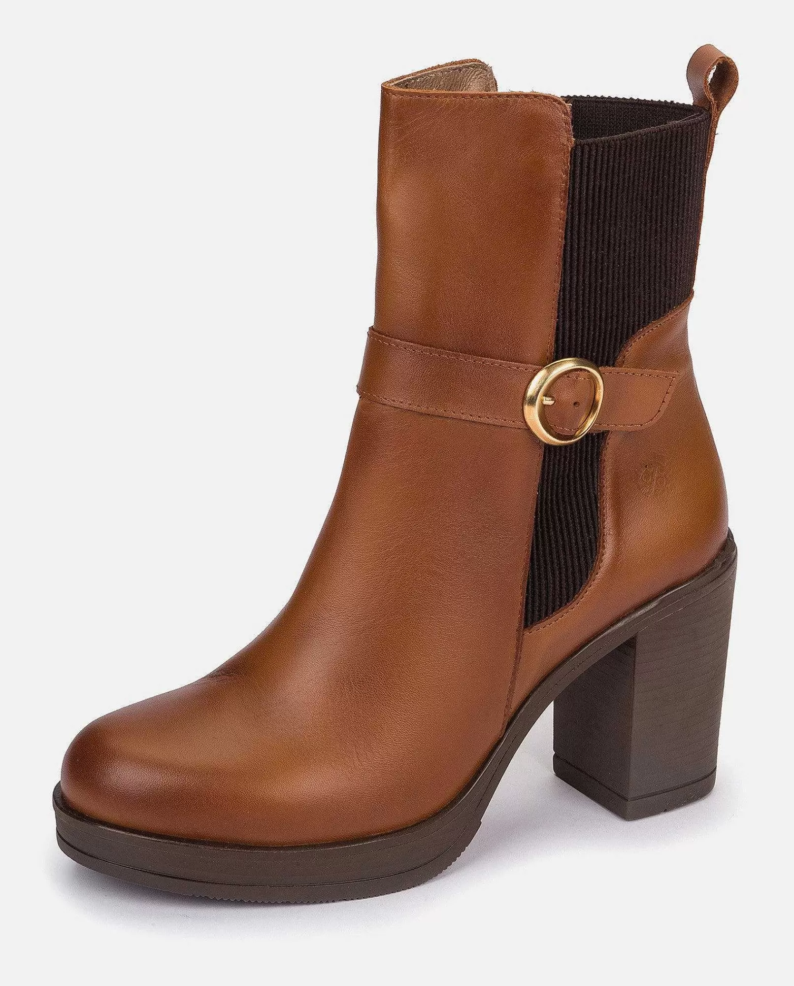 El Botín Pilsen 003 En Color Cuero, Con Detalles En Un Tono Más Y Hebillas En Dorado, Es Un Básico Que Hará Resaltar De Forma Diferente Tu Look, Un Aspecto Elegante Con Un Diseño Innovador Pero Sin Dejar De Lado La Elegancia. Ha Sido Diseñado En Piel Vacuna Con Un Tacón De 8,5 Cm. Fabricado En España. Elaborado De Manera Artesanal, Material De Piel Vacuna Y Uso De Tintes Vegetales Respetuosos Con El Medio Ambiente.