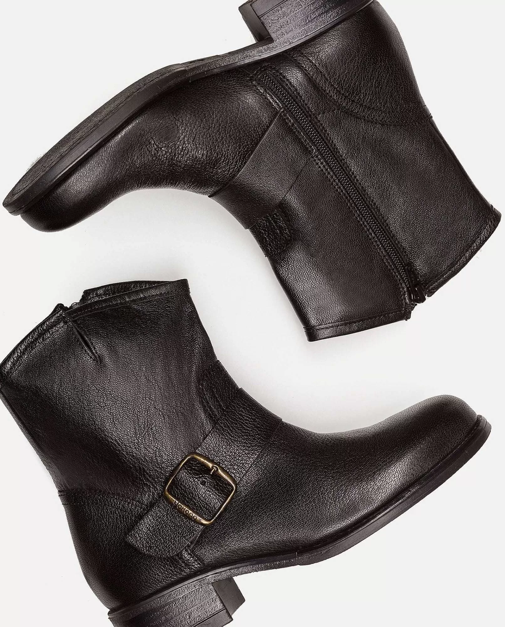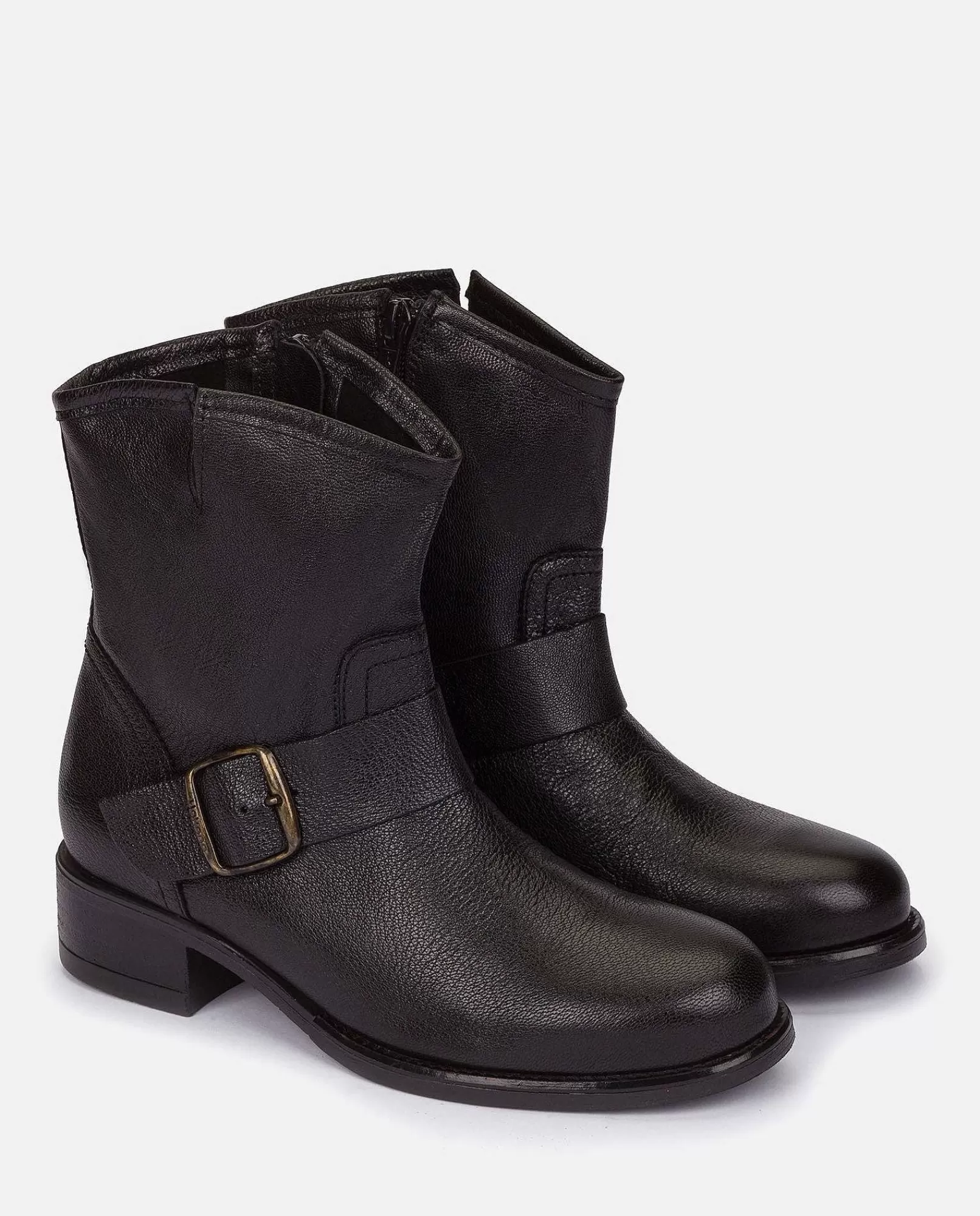 El Botín Plano Cambra 001 En Negro, Estilo Desenfadado Y Detalle De Hebilla Dorada En El Lateral. Garantiza El Máximo Confort Con Su Suela De 3 Cm Y Su Corte En Piel Vacuna. Está Elaborado De Manera Artesanal En España Y Mediante En Uso De Tintes Vegetales Respetuosos Con El Medio Ambiente.
