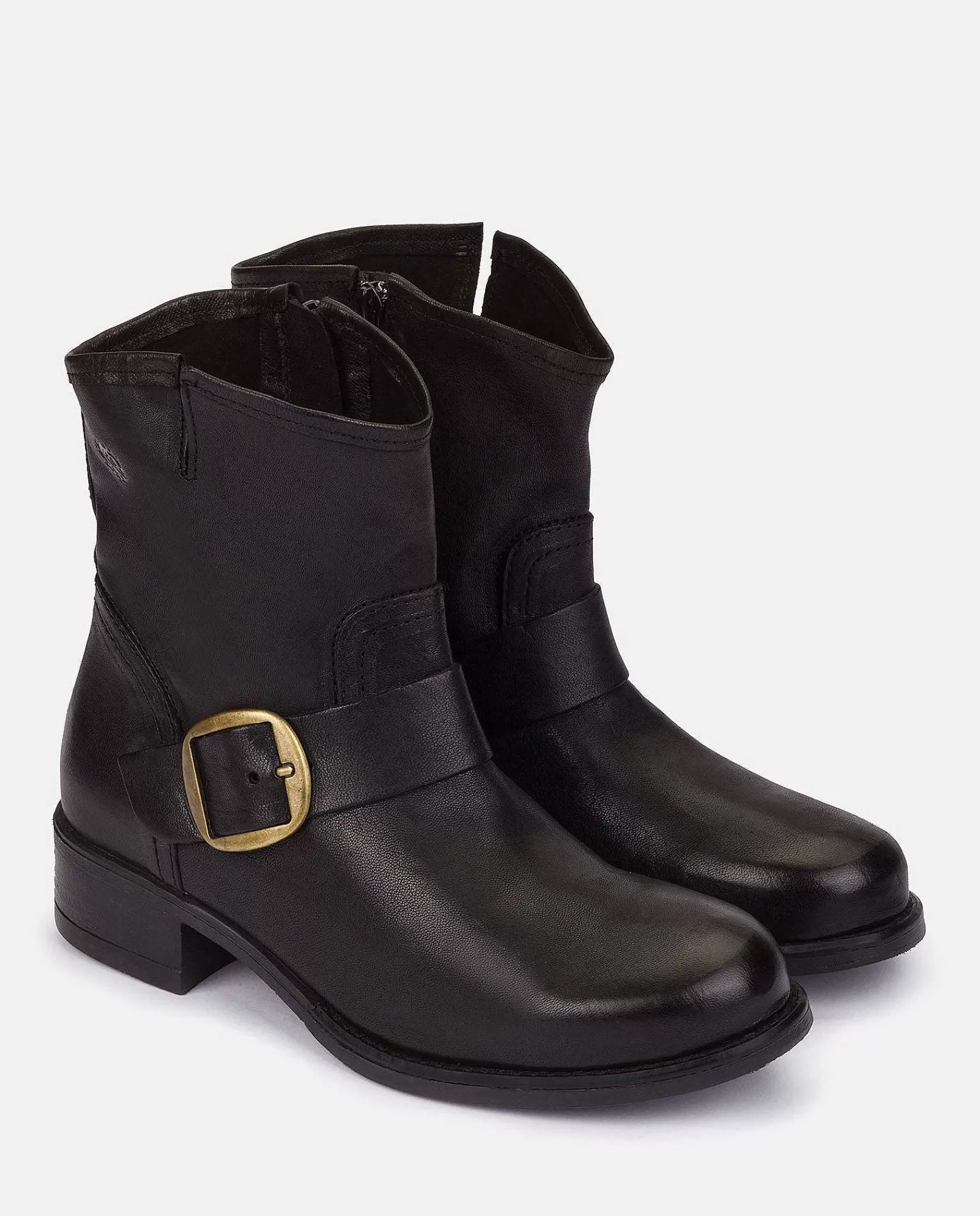 El Botín Mons 001 En Color Negro, Es Un Modelo Suave, Comódo Y Flexible. Fabricado En España. Su Diseño Es Casual E Indescriptible, Cuenta Con Una Gran Hebilla Dorada Que Marcará Tu Paso Con Precisión. Corte En Piel Vacuna Lisa. Fabricado De Manera Sostenible Mediante El Uso De Tintes Vegetales Y Embalajes Naturales, Suela De 4 Cm Y Plantilla Acolchada Y Antideslizante, Garantizando El Completo Agarre Del Pie.