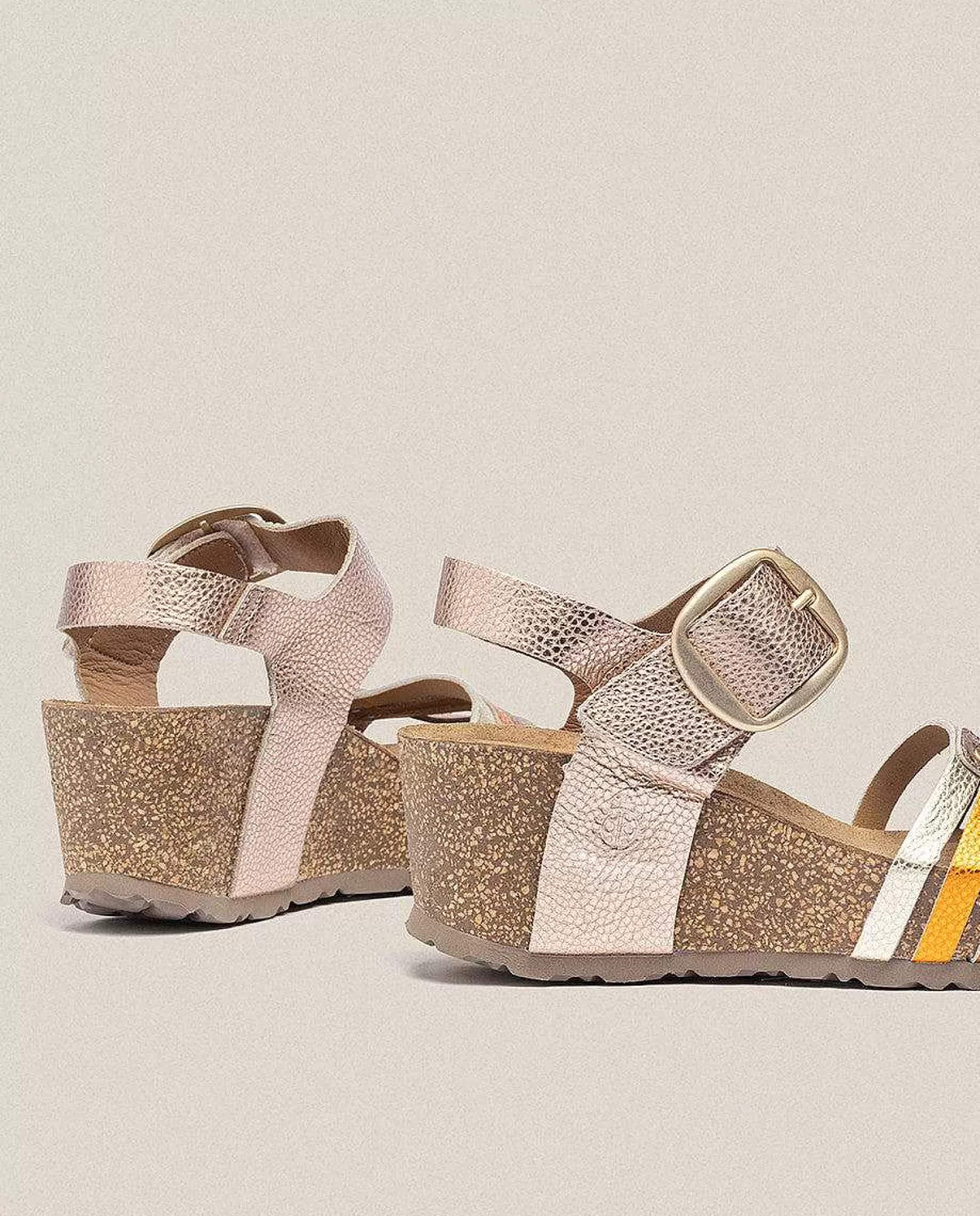 La Sandalia De Cuña Bari 304 En Rosa Con Tiras Multicolor, Una Sandalia Distinta Para Los Looks Más Atrevidos. Cuenta Con Un Cierre De Velcro Y Hebilla Decorativa Para Que Encuentres La Comodidad Sin Ningún Esfuerzo. Tiene Una Suela De 5,5 Cm Y Una Plantilla Acolchada Y Antideslizante Que Garantiza El Agarre Del Pie. Está Elaborada De Manera Artesanal En España Mediante El Uso De Tintes Vegetales Respetuosos Con El Medio Ambiente.