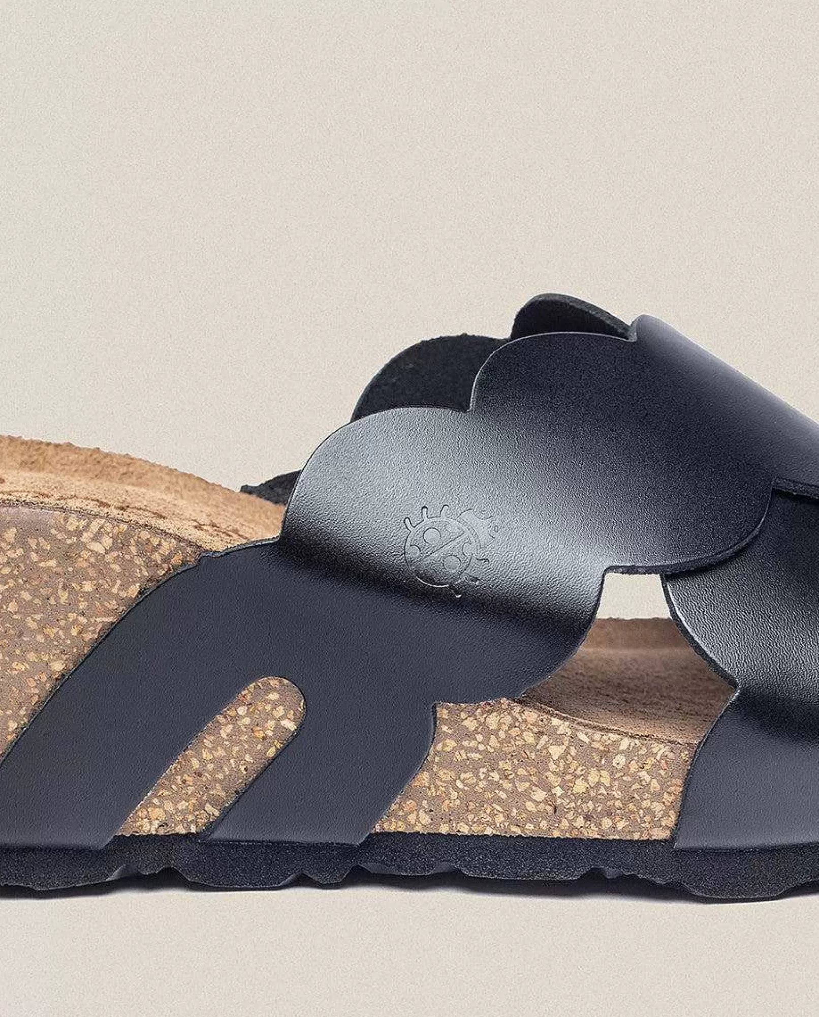 La Sandalia De Cuña Cadiz 300 En Negro, Con Un Diseño De Corte Circular Que Aporta Un Toque Diferente Sin Dejar De Lado La Esencia De La Línea. Cuenta Con Una Cuña De 5,5 Cm Y Una Plantilla Antideslizante Que Garantiza El Agarre Del Pie. Está Elaborada De Manera Artesanal En España, Material De Piel Y Uso De Tintes Vegetales Respetuosos Con El Medio Ambiente.