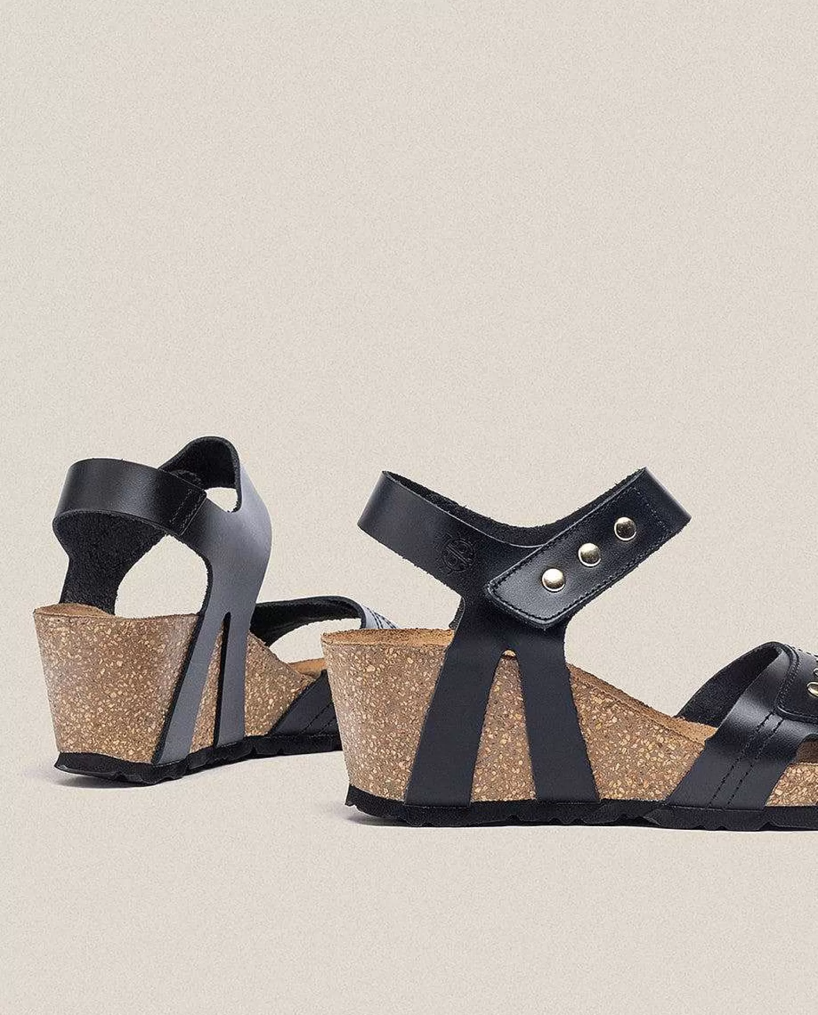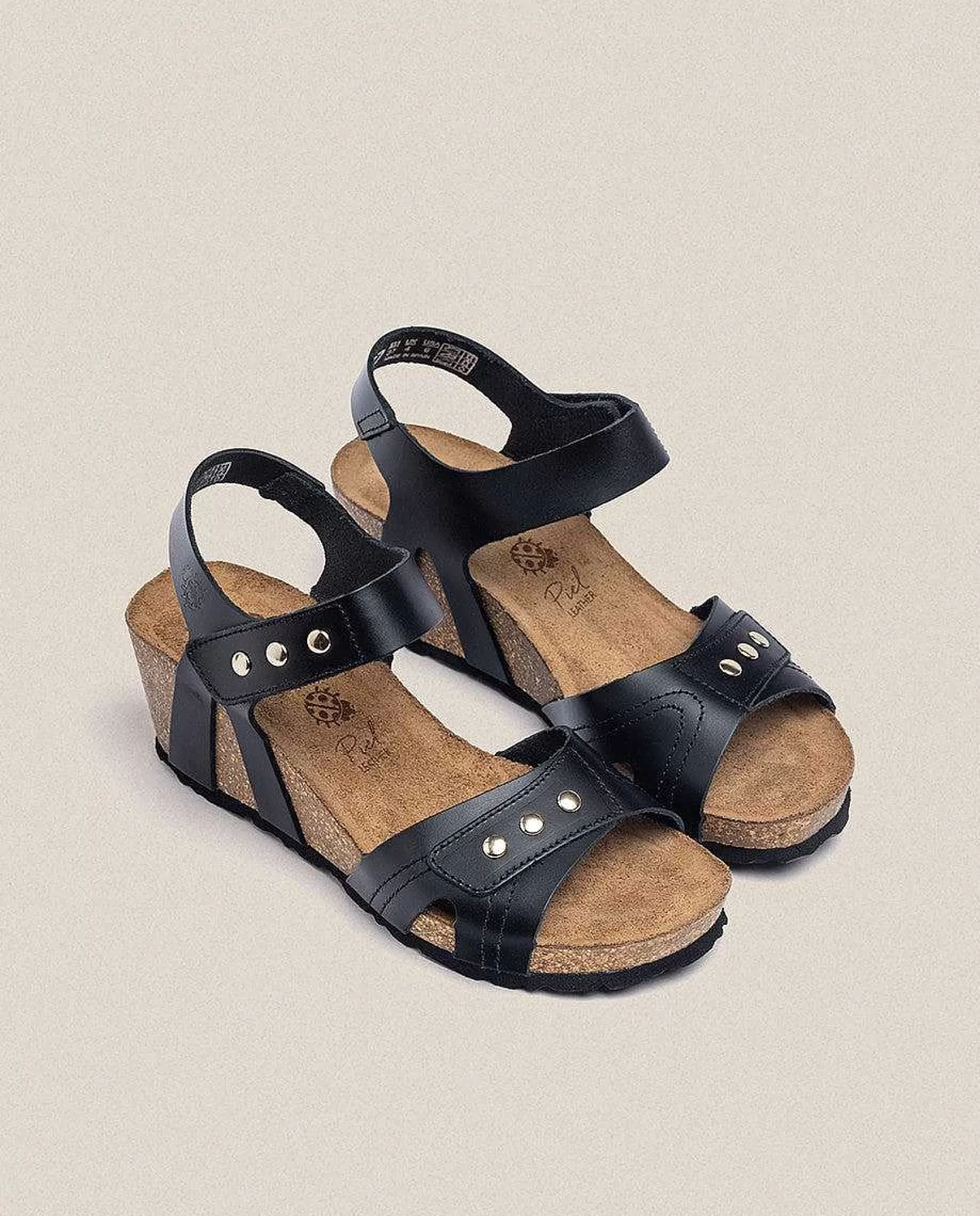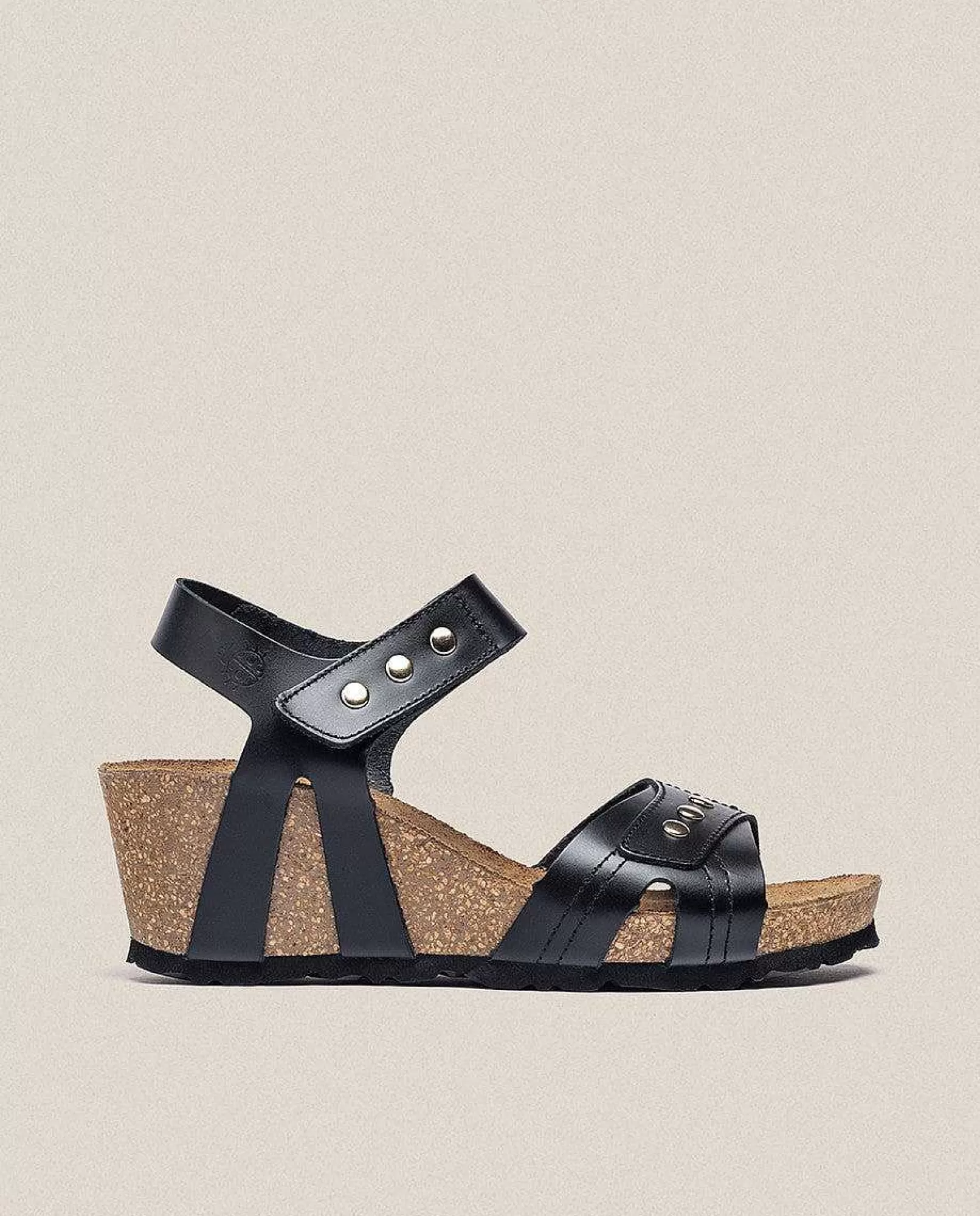 La Sandalia De Cuña Cadiz 303 En Negro, Cierre De Veldro Y Tachuelas Como Detalle Principal En Su Diseño. Perfecta Para Combinar Con Cualquier Look Y Aportar Un Toque Elegante A Tu Día A Día. Tiene Una Cuña De 5,5 Cm Y Una Plantilla Antideslizante Que Garantiza El Agarre. Está Elaborada De Manera Artesanal En España, Material De Piel Y Uso De Tintes Vegetales Respetuosos Con El Medio Ambiente.