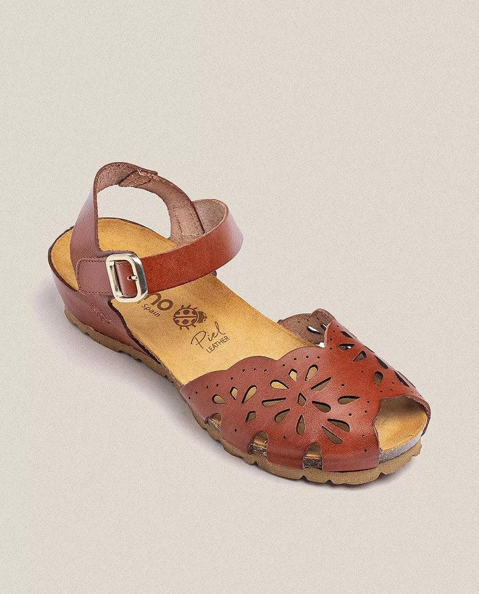 La Sandalia De Cuña Monaco, Un Clásico Renovado. Color Marrón, Punta Cerrada Y Más Detalles En Toda La Sandalia, Hebilla Decorativa Y Cierre De Velcro, Para Garantizar La Frescura Y La Comodidad Que Caracteriza A Este Modelo. Cuenta Con Una Suela De 3,5 Cm Y Una Plantilla Antideslizante Que Garantiza El Agarre Del Pie. Está Elaborada De Manera Artesanal En España, Material De Piel Y Uso De Tintes Vegetales Respetuosos Con El Medio Ambiente.