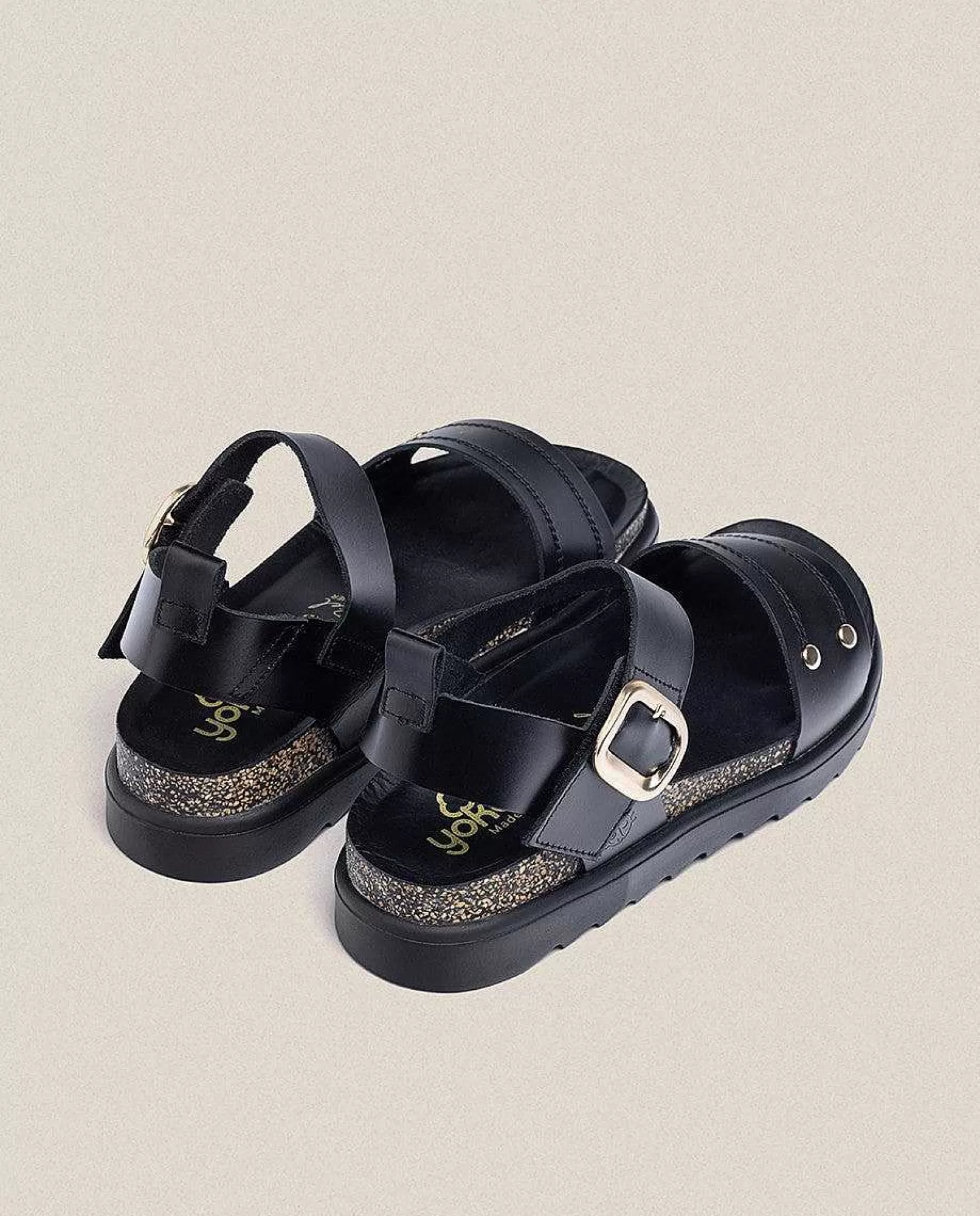 La Sandalia De Plataforma Tunez 128 En Negro, Con Detalles En Dorado Y Una Tira Que Agarra Los Dedos Que Transmite Comodidad. Hebilla Decorativa Y Cierre De Velcro Para Una Mayor Comodidad. Plataforma De 4 Cm Y Una Plantilla Antideslizante Que Garantiza El Agarre Del Pie. Está Elaborado De Manera Artesanal En España, Material De Piel Y Uso De Tintes Vegetales Respetuosos Con El Medio Ambiente