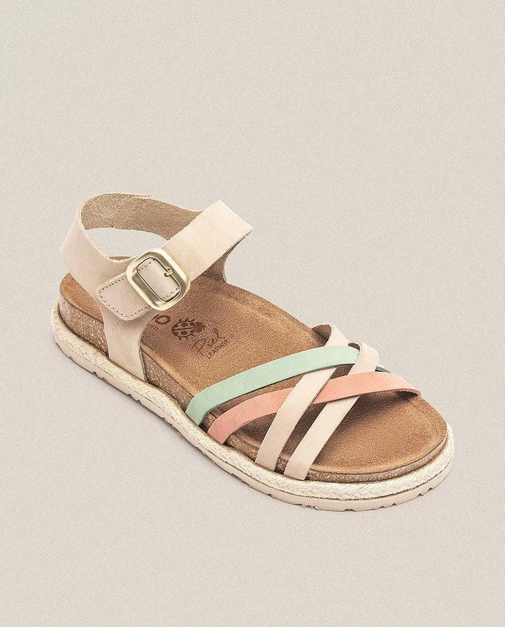 El Modelo Arena 001 En Color Beige, Una Sandalia Plana Con Un Diseño Alegre Compuesto Por Tiras Entrelazadas. Cuenta Con Un Cierre De Hebilla Dorada Que Aporta Comodidad Permitiendo El Ajuste A Cada Pie. Tiene Una Suela De 3 Cm Y Una Plantilla Antideslizante Que Garantiza El Agarre Del Pie. Está Elaborada De Manera Artesanal En España Mediante El Uso De Tintes Vegetales Respetuosos Con El Medio Ambiente.